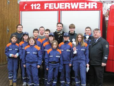 Die Sieger, das Team aus Giflitz sowie fast alle Starter aus Bergheim, zusammen mit GJFW Domenic Fallbracht und GBI Manfred Hankel. |