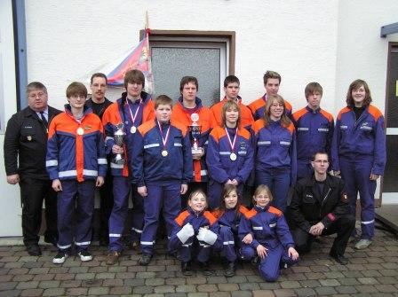 Somit traten beim Knotenwettbewerb. 82 Starter aus 11 Ortsteilen gegeneinander an und rangen