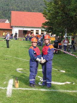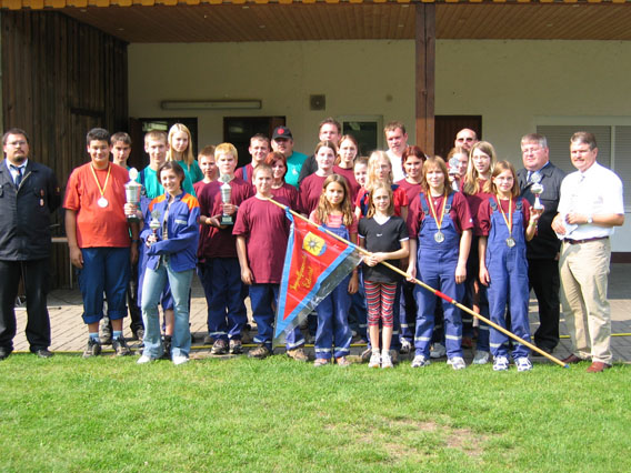 Die Pokale im Hintergrund sind von der ausrichtenden Feuerwehr Affoldern gestiftet worden.